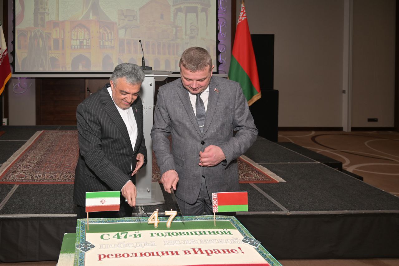 مراسم گرامی داشت چهل وهفتمین سالگرد پیروزی انقلاب شکوهمند اسلامی روز چهارشنبه  مورخ 15 بهمن ماه 1404 (4 فوریه 2026) در هتل ماریوت مینسک با حضور مهمان ویژه جناب آقای آندری کوزنتسف، وزیر صنایع بلاروس و رئیس کمیسیون مشترک همکاری‌های اقتصادی دو کشور، تعدادی از سفرا و دیپلماتهای مقیم، وابستگان نظامی، نمایندگان پارلمان، مقامات دولتی، مدیران و نمایندگان شرکتهای خصوصی، فرهیختگان حوزه فرهنگی، علمی، مذهبی، رسانه ای و همچنین جمعی از ایرانیان مقیم برگزار شد. این مراسم با پخش سرود ملی جمهوری اسلامی ایران و جمهوری بلاروس آغاز شد. پس از آن، جناب آقای صانعی، سفیر محترم کشورمان و آقای کوزنتسف وزیر صنایع بلاروس سخنرانی نمودند.پخش کلیپ 15 دقیقه ای معرفی تصویری ایران به زبان روسی  و نماهنگ بلاروسی آقای گرمان تیتوف، خواننده بلاروسی با موضوع تاریخ، تمدن و فرهنگ ایران زمین، از دیگر بخش های این مراسم بود. بنرهایی که نشان دهنده برخی از مهم ترین دستاوردهای علمی جمهوری اسلامی ایران می‌باشد و صنایع دستی کشورمان از جمله فرش، تابلو فرش و کتاب‌های نفیس در حاشیه این مراسم به نمایش درآمد که موجب جلب توجه مهمانان شد.