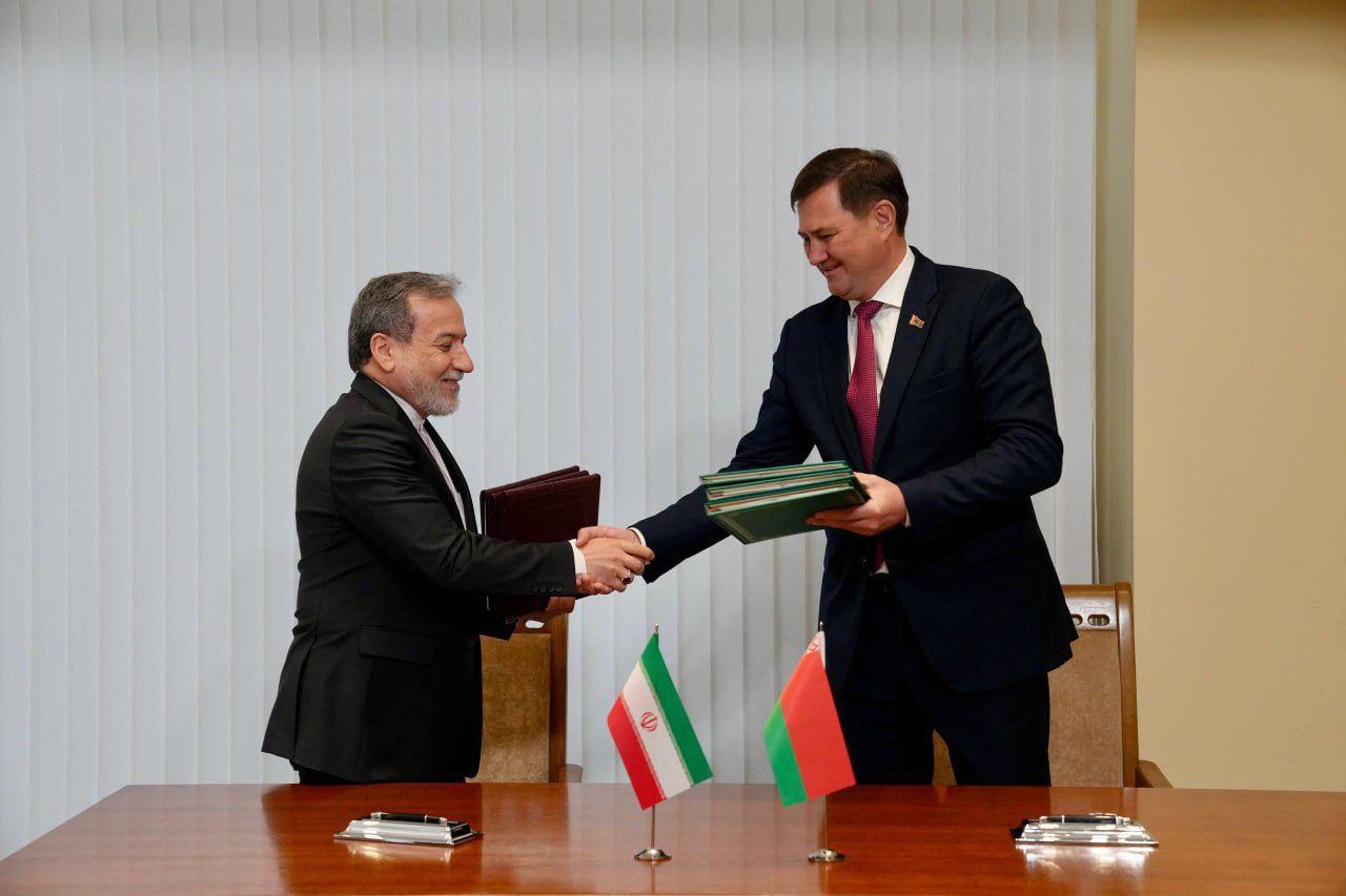 در پایان دیدار جناب آقای دکتر عراقچی وزیر محترم امور خارجه کشورمان با وزیر امور خارجه بلاروس ۳ سند همکاری: «اعلامیه جمهوری اسلامی ایران و جمهوری بلاروس درباره تقویت نقش حقوق بین‌الملل در روابط بین‌الملل»، «اعلامیه جمهوری اسلامی ایران و جمهوری بلاروس درباره اصول راهبردی مقابله با اقدامات قهرآمیز یکجانبه و راه‌های رفع و کاهش پیامدهای منفی آنها» و «برنامه همکاری وزارت امور خارجه جمهوری اسلامی ایران و وزارت امور خارجه جمهوری بلاروس ۲۰۲۶-۲۰۳۰»به امضاء طرفین رسید.