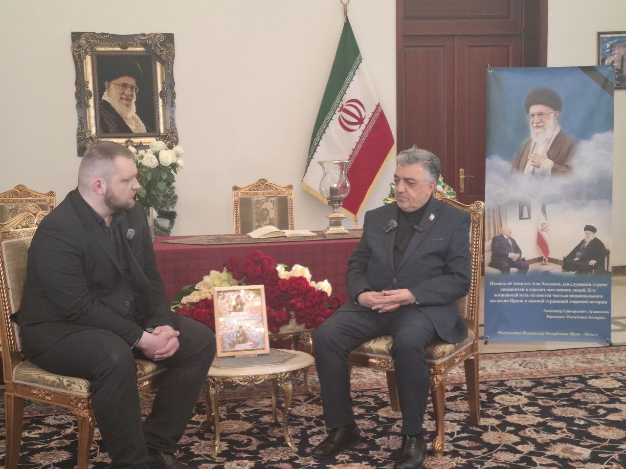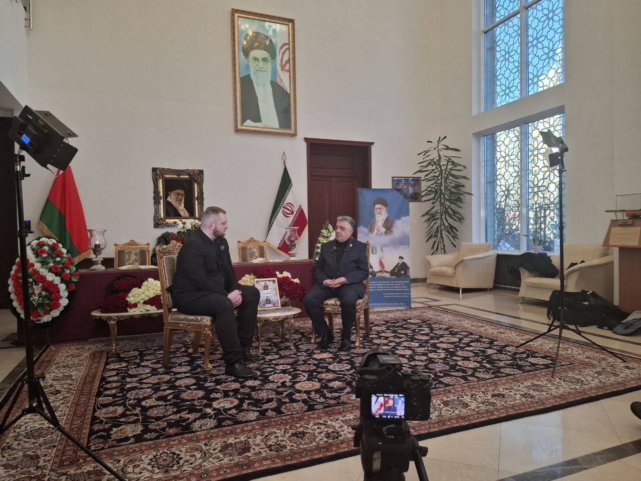 جناب آقای علیرضا صانعی سفیر محترم کشورمان در روز پنج شنبه 1404/12/14 با شبکه تلویزیونی CTV  بلاروس مصاحبه کردند. ایشان در این مصاحبه که با آقای گریگوری آزارینوک مجری شبکه  مزبور انجام شد به تیین تحولات کشورمان و تجاوز نظامی آمریکا و رژیم صهیونیستی اسرائیل به خاک کشورمان و شهادت رهبر معظم انقلاب، مقامات ،شهروندان و کودکان بیگناه ایران پرداختند.